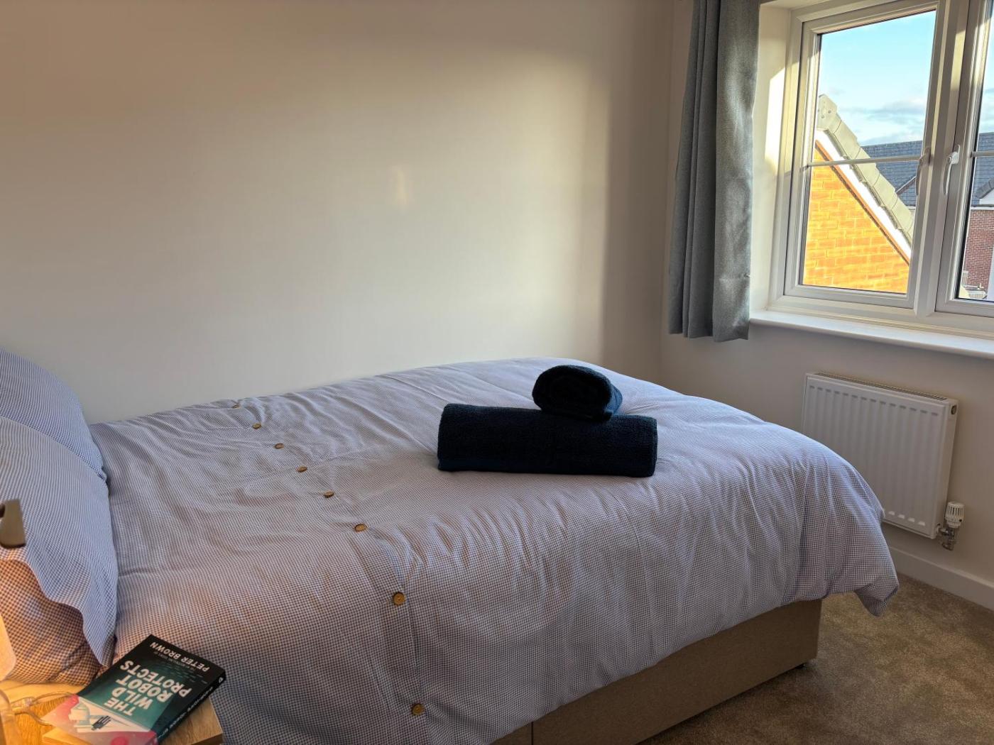 Three-Bedroom House. Boasting a private entrance, this holiday home features 1 living room, 3 separate bedrooms and 2 bathrooms with a bath and a shower. The fully equipped kitchen features a stovetop, a refrigerator, a dishwasher and kitchenware. This holiday home has a washing machine, a seating area, a flat-screen TV with streaming services and a patio. The unit has 3 beds.