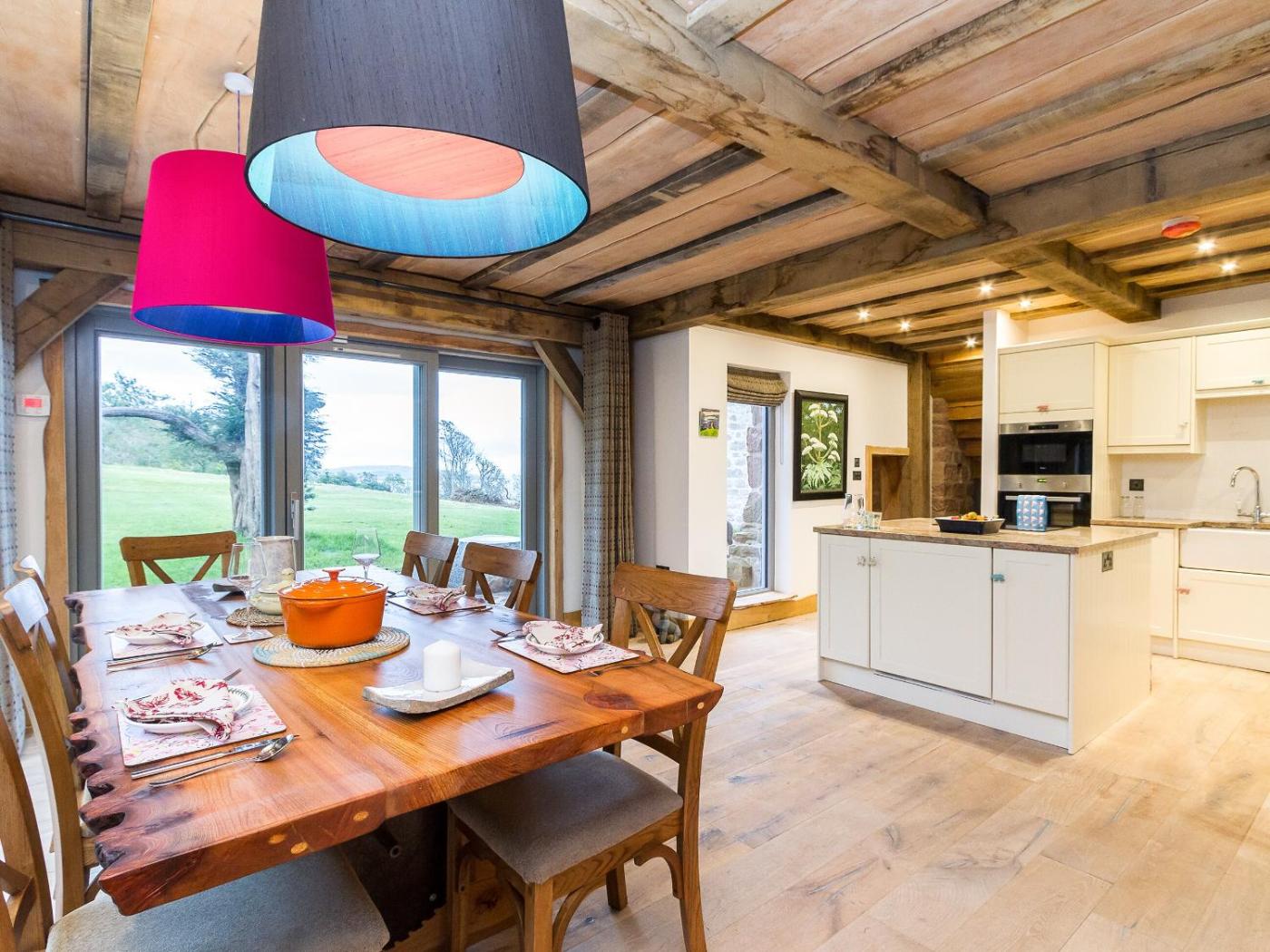 Four-Bedroom Holiday Home. This holiday homes special features are the hot tub and the fireplace. Featuring a private entrance, this holiday home is comprised of 4 bedrooms, 3 bathrooms and a kitchen. The holiday homes kitchen, which features a dishwasher, is available for cooking and storing food. The holiday home offers a washing machine, a barbecue, heating, a TV, as well as sea views. The unit offers 7 beds.