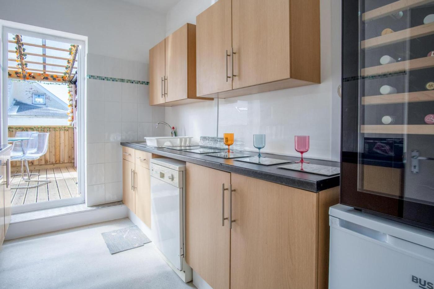 Two-Bedroom Apartment. Featuring a private entrance, this spacious apartment also comprises 2 separate bedrooms, 1 bathroom with a shower, a kitchen and a dining area. Meals can be prepared in the well-fitted kitchen, which comes with a stovetop, a refrigerator, kitchenware and an oven. Boasting a balcony with sea views, this apartment also provides a washing machine and a TV. The unit offers 2 beds.