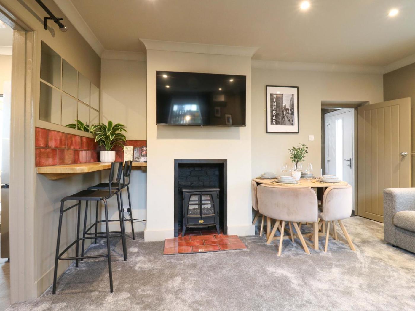 Holiday Home. The fireplace is the standout feature of this holiday home. This holiday home comes with 2 bedrooms, a seating area with a sofa and 1 bathroom with a shower. Guests can make meals in the kitchen that features a stovetop, a refrigerator, an oven and a microwave. The holiday home features a washing machine, a dining area, a wardrobe, an electric kettle, as well as a TV. The unit has 2 beds.